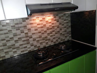 - Lemari atas yang awam di fungsikan untuk menyipan piring, gelas asesoris pendorong masak yang berkarakter ringan